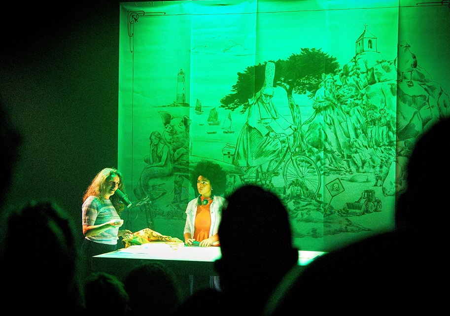 Les thématiques sont, on le voit, d’importance capitale. D’ailleurs, les enquêtrices ont subi intimidations et représailles pour avoir informé sur ces enjeux écologiques et humains. Pouvoir les entendre partager leurs découvertes, leurs démarches, les obstacles rencontrés suffirait à faire l’intérêt du spectacle. Non seulement l’équipe donne voix aux enquêtrices, mais elle les écoute. À ces « reporTERRES » qui refusent l’étiquette d’héroïnes, elle n’impose ainsi, ni de jouer, ni d’adopter un parler « théâtre ». L’une restera de profil souvent, face à son micro. L’autre sera soutenue par la gouaille d’un partenaire.