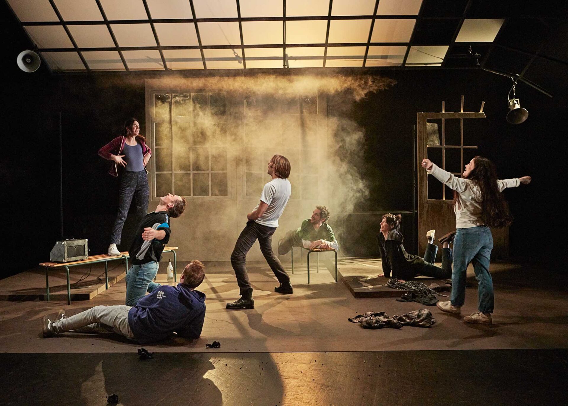 En 2017, on découvrait au Festival Impatience Un homme qui fume c’est plus sain. Coup de cœur. Un groupe de jeunes comédiens sortis de L’école du tnba exaltaient le collectif, en racontant une histoire gaie et triste à la fois. Leur joie d’être ensemble et leur confiance dans le jeu du théâtre étaient contagieuses. Le temps a passé. Pourtant, au fil des saisons, cette bande-là n’a pas abdiqué. Alors que les temps difficiles vidaient les plateaux, que les images au contraire pouvaient les saturer, ce collectif se métamorphosait en restant fidèle à lui-même : L’Île, À L’Ouest… et en 2024 : l’Éclipse, pour mesurer tout ce temps passer à créer ensemble.
